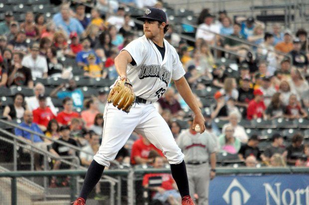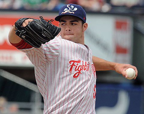 Jesse Biddle throws a pitch in his Triple-A debut with the IronPigs. (Courtesy of Justin Lafleur)