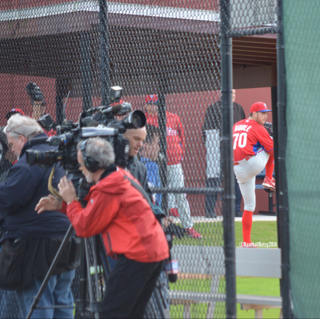 Throwing a bullpen at the Carpenter Complex, Clearwater, Florida, Day 1 of Spring Training 2015 (Credit: David Swanson, Inquirer staff photographer)